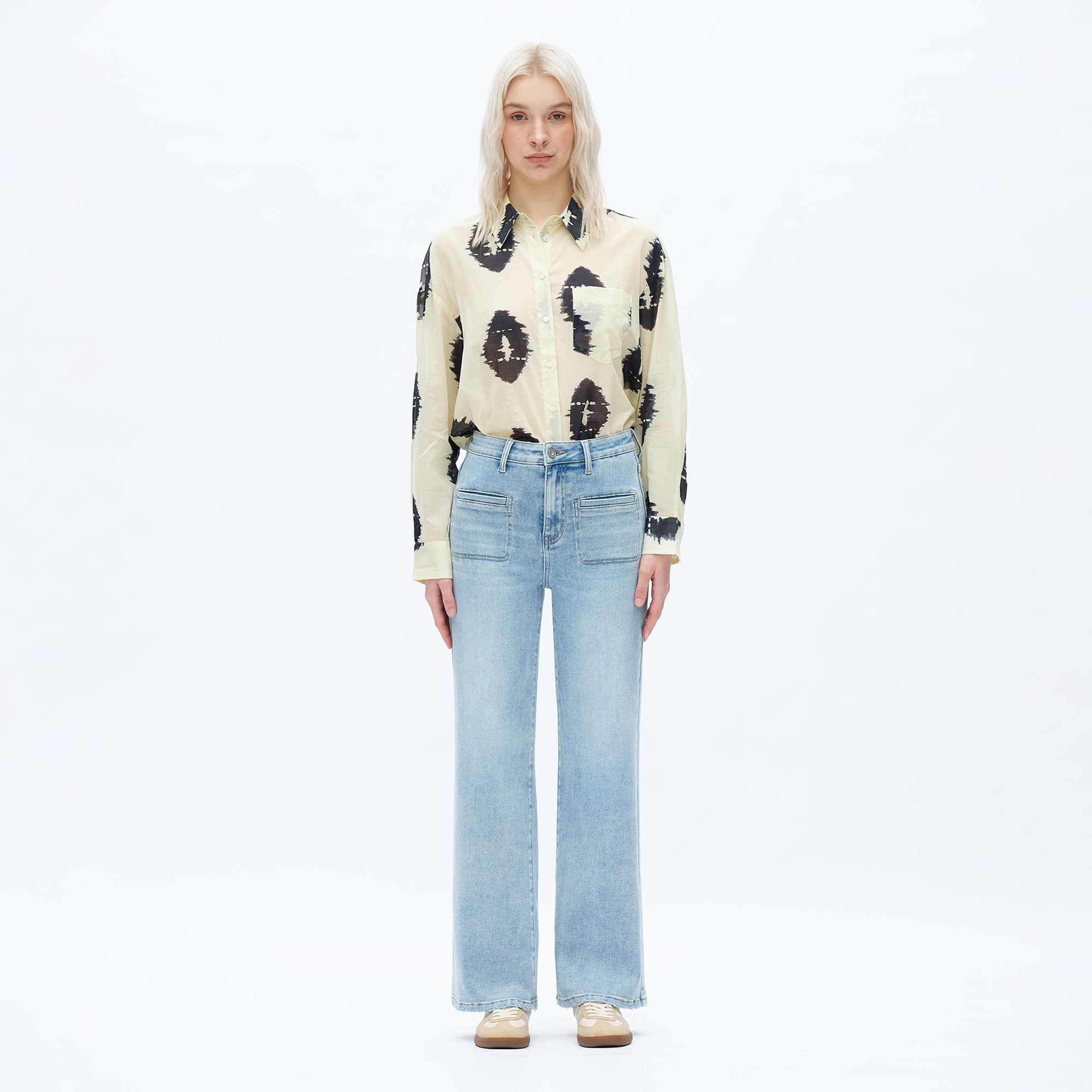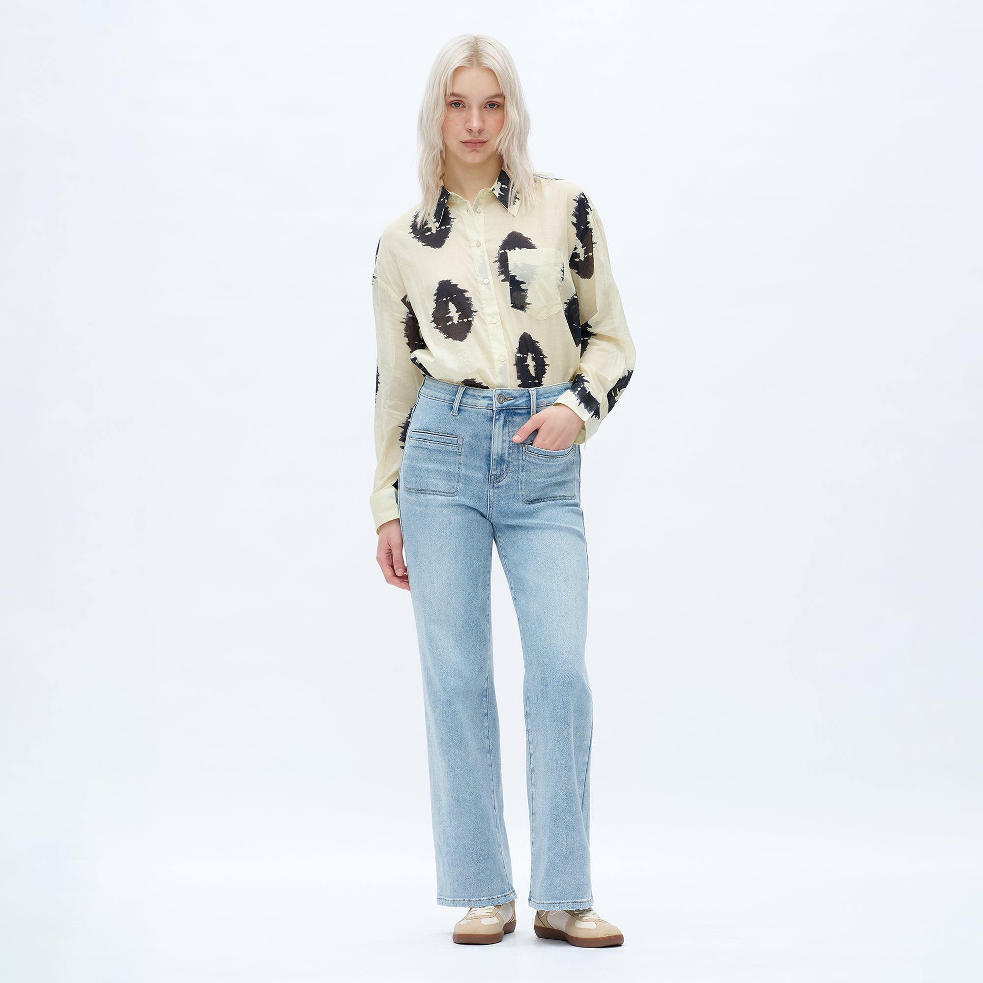 ONESO Women Mid-Waist Front Pocket Design Wide-Leg Jeans High Stretch Comfortable Denim Pants