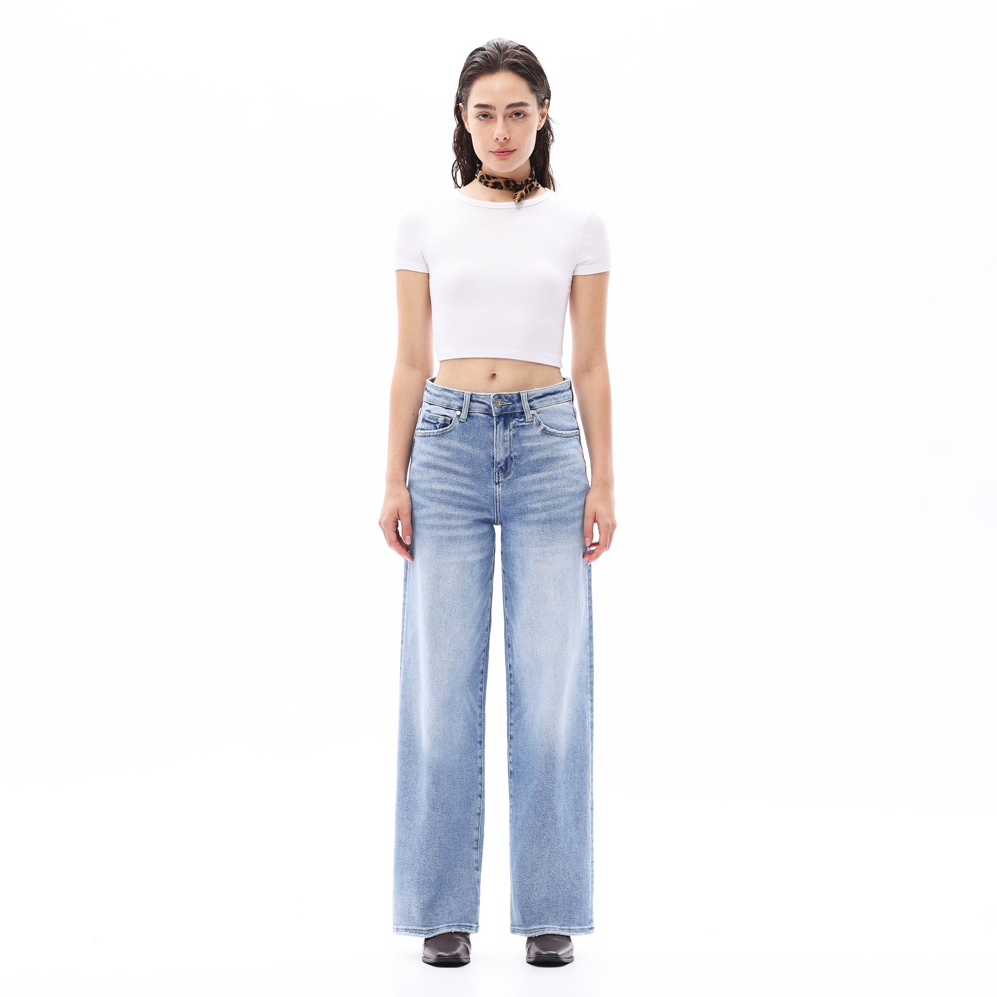 ONESO High Waist Stretchy Wide Leg BBL Jeans for Women Basic Straight Denim Pants