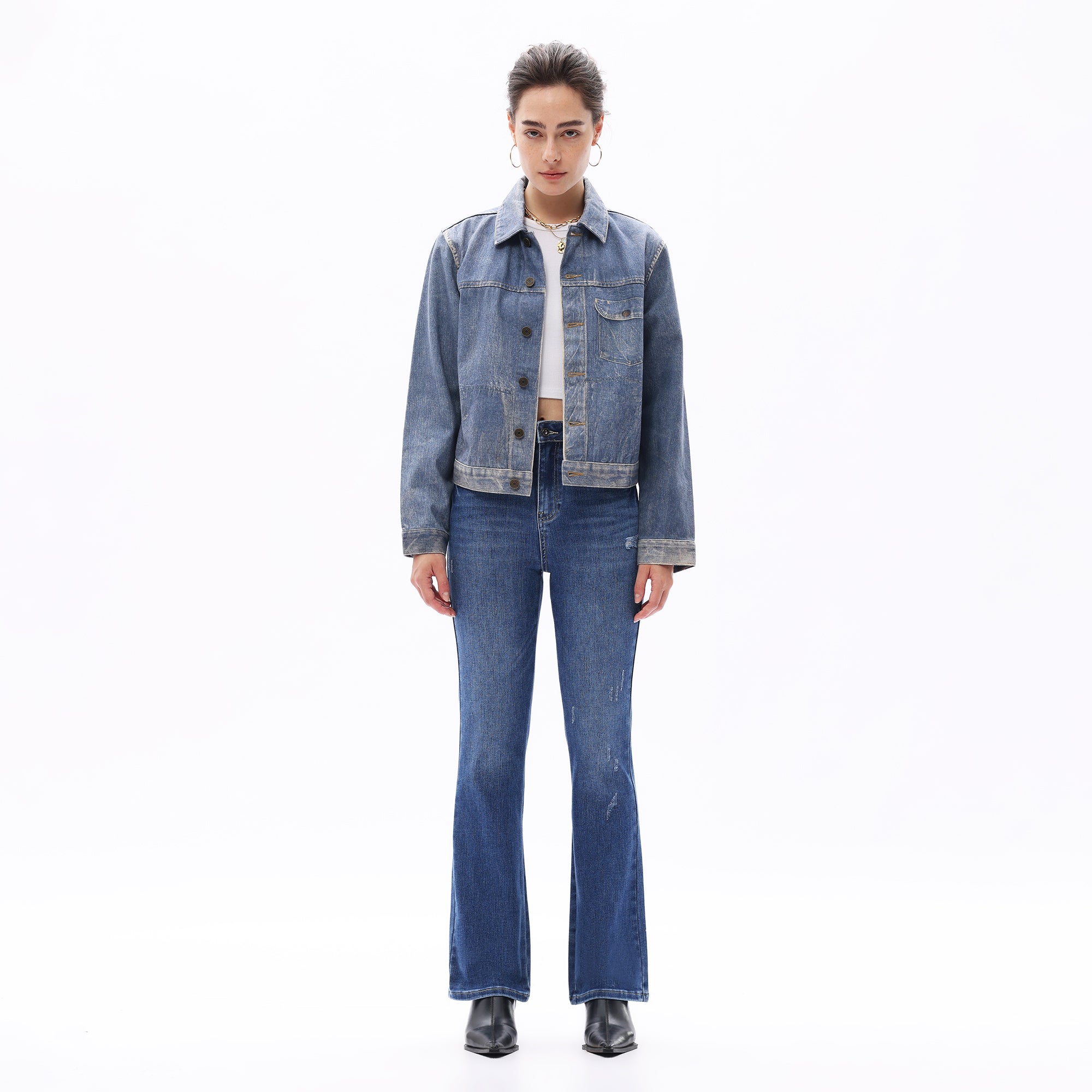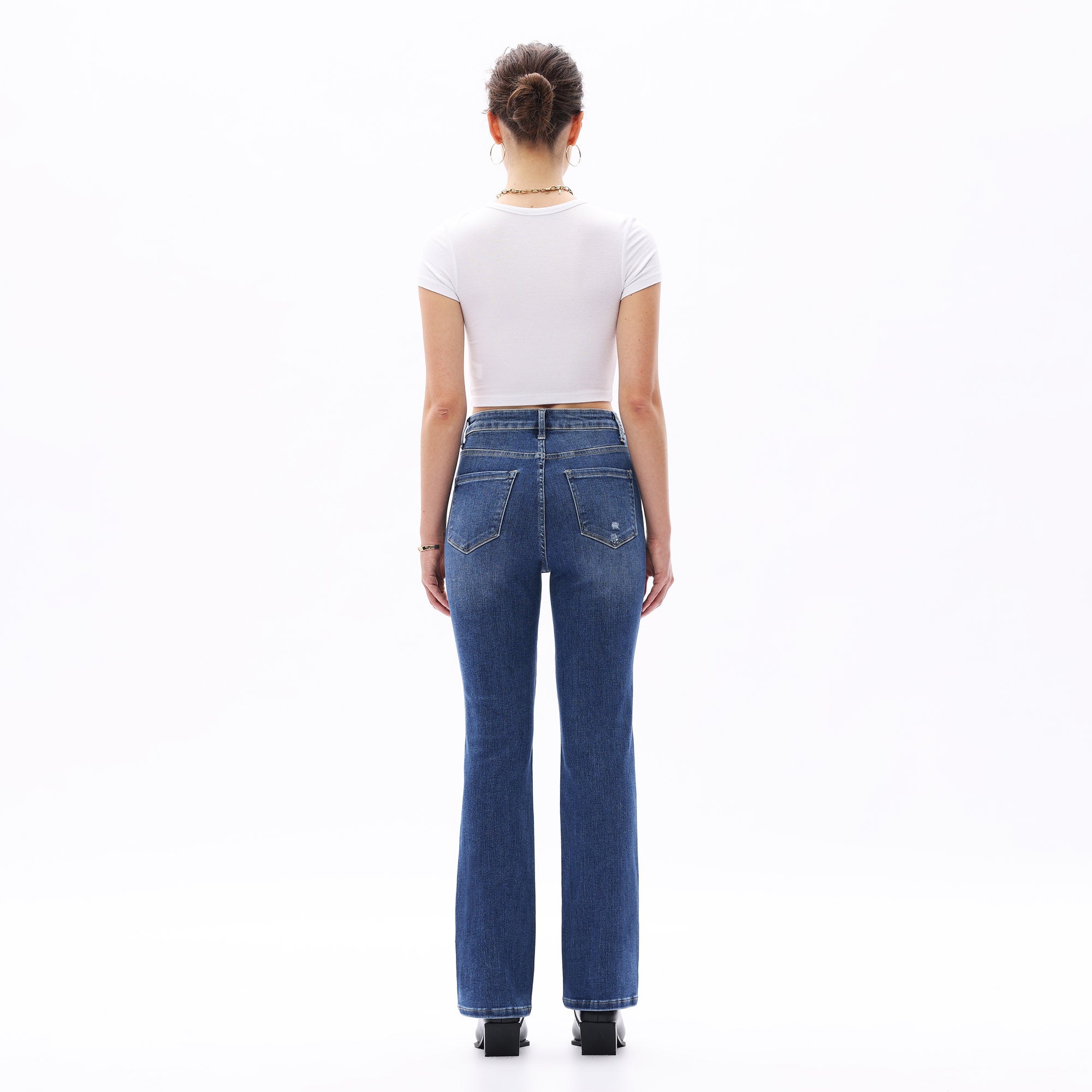 ONESO High Waist Flared Medium Blue Jeans Casual Comfort Pants Womens wear Sexy Bottom