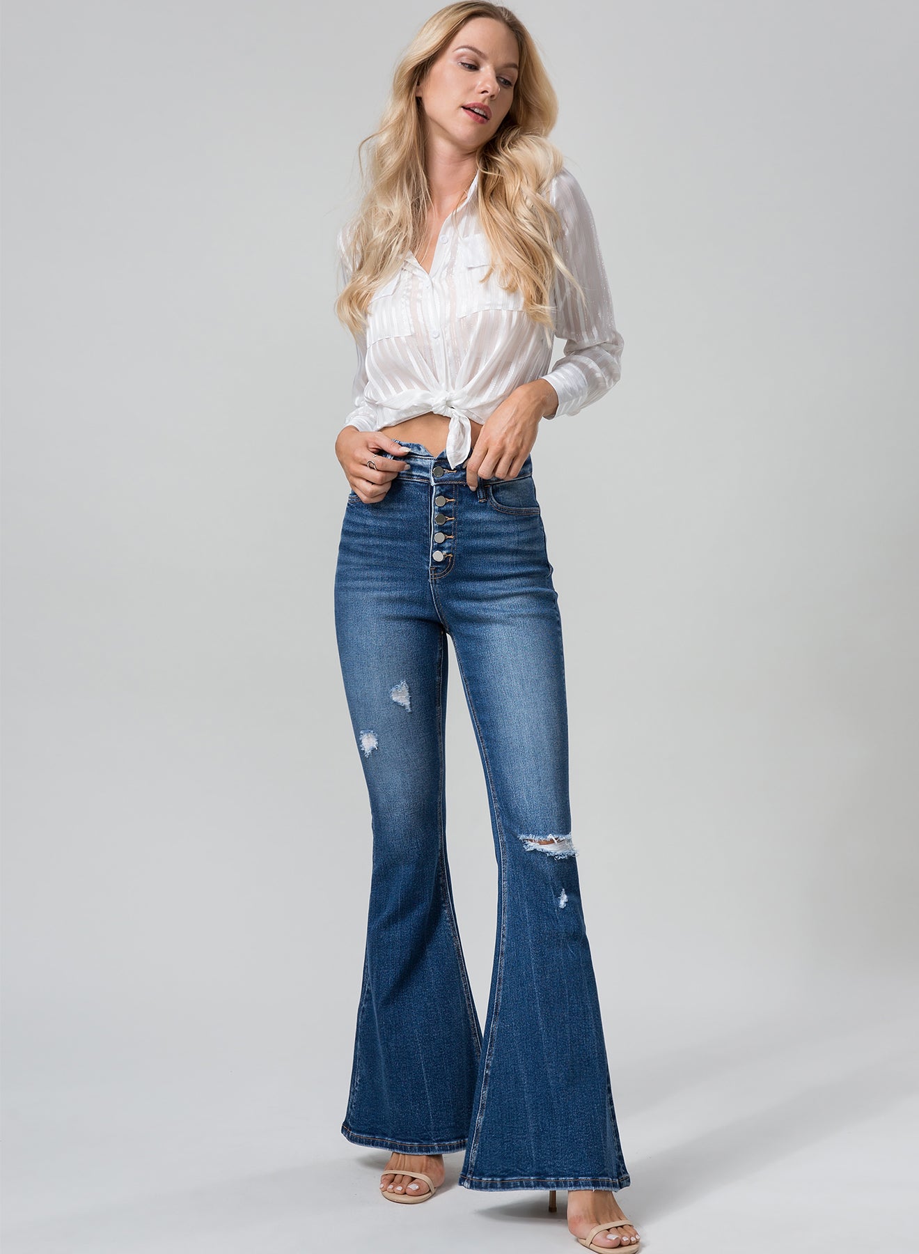 ONESO Ultra High Waisted Distressed Flare Jeans