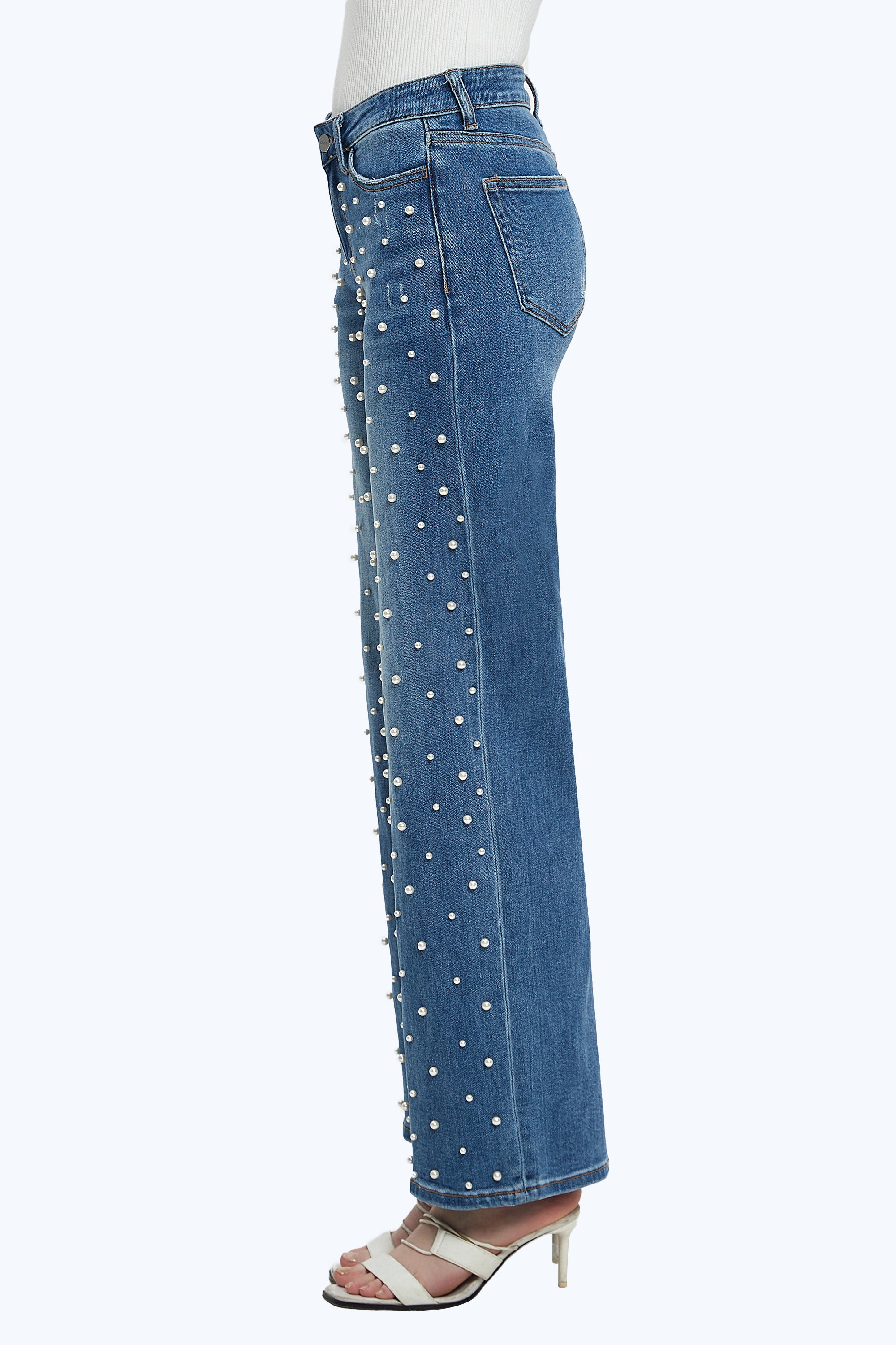 ONESO Women's Pearl Wide Leg Mid Low Waist Relaxed Fit Flattering Jeans